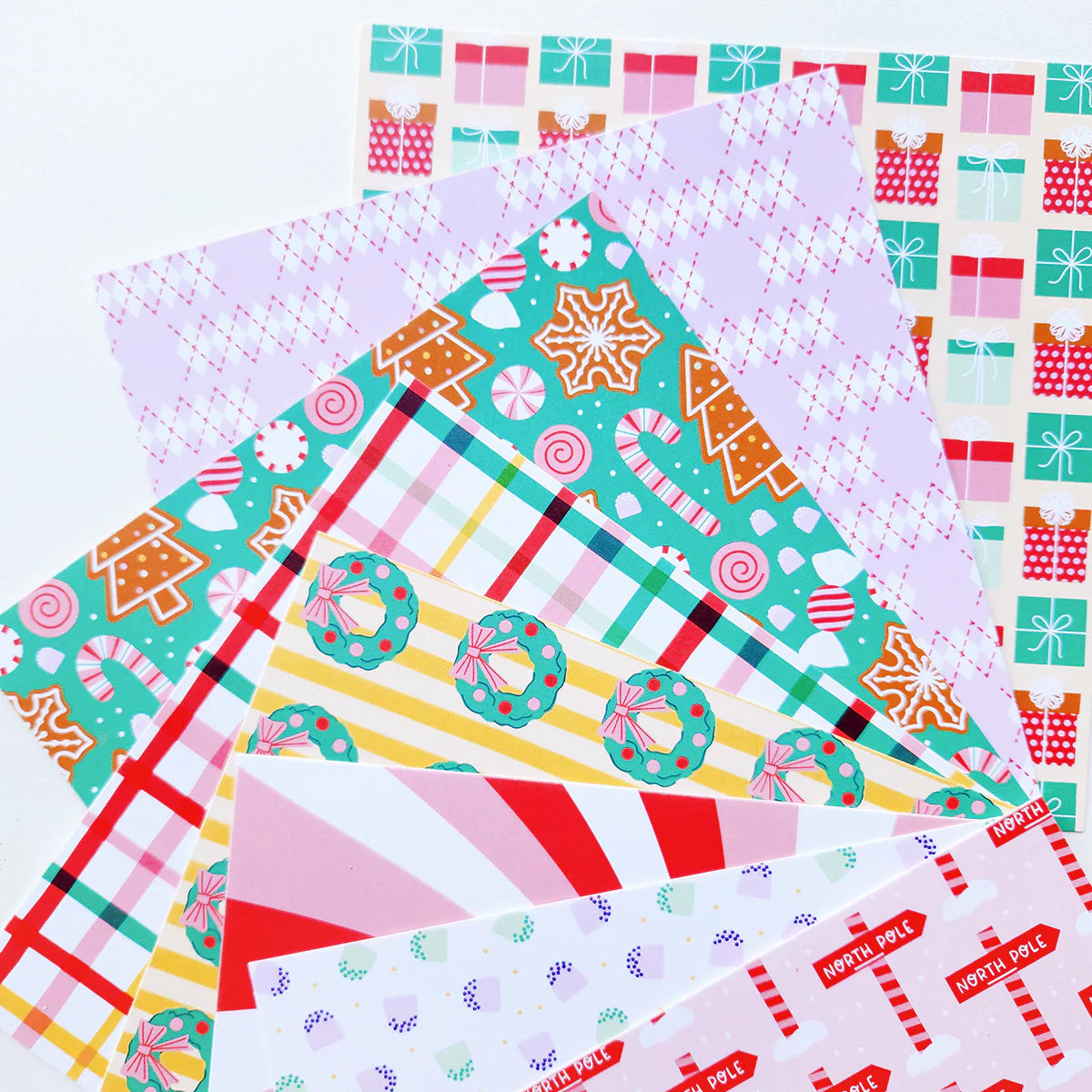 Add a playful touch to your holiday projects with the North Pole Patterned Paper pack! This whimsical 6x6 collection features festive patterns including wreaths, stacks of gifts, and yummy cookies and gumdrops—perfect for cards, tags, and holiday crafts. Designed in a bright and cheerful party color palette of Do-Si-Do, Samba, Catching Rays, Pistachio, Mardi Gras, Sugarplum, Buttercream, and Gingerbread, these papers bring a pop of color and fun to all your seasonal creations.