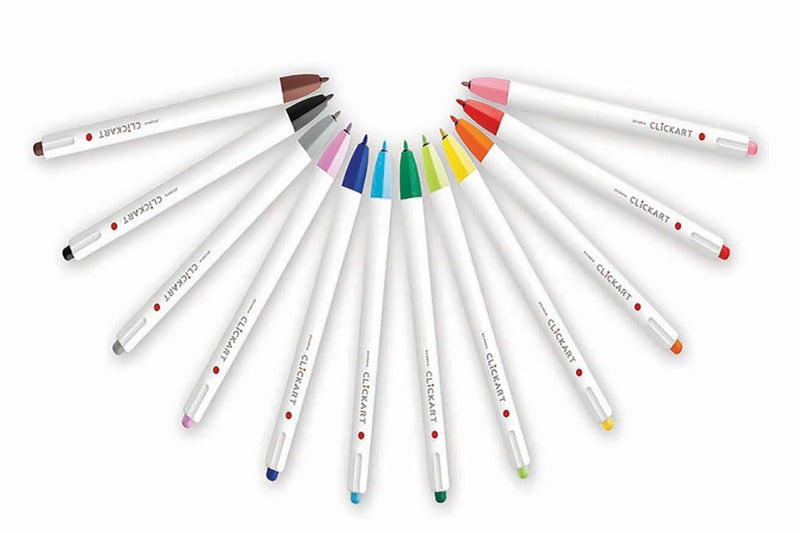 Never worry about ink drying out with the Zebra CLiCKART marker pen. The Zebra CLiCKART features a capless design and new ink technology that absorbs the moisture in the air, which keeps the ink from drying out. The Zebra CLiCKART is perfect for journaling, colour coding, drawing, and everyday writing. With a satisfying click and the relief of not having to worry about misplacing the cap, the CLiCKART marker pen is a perfect companion for your creative projects.