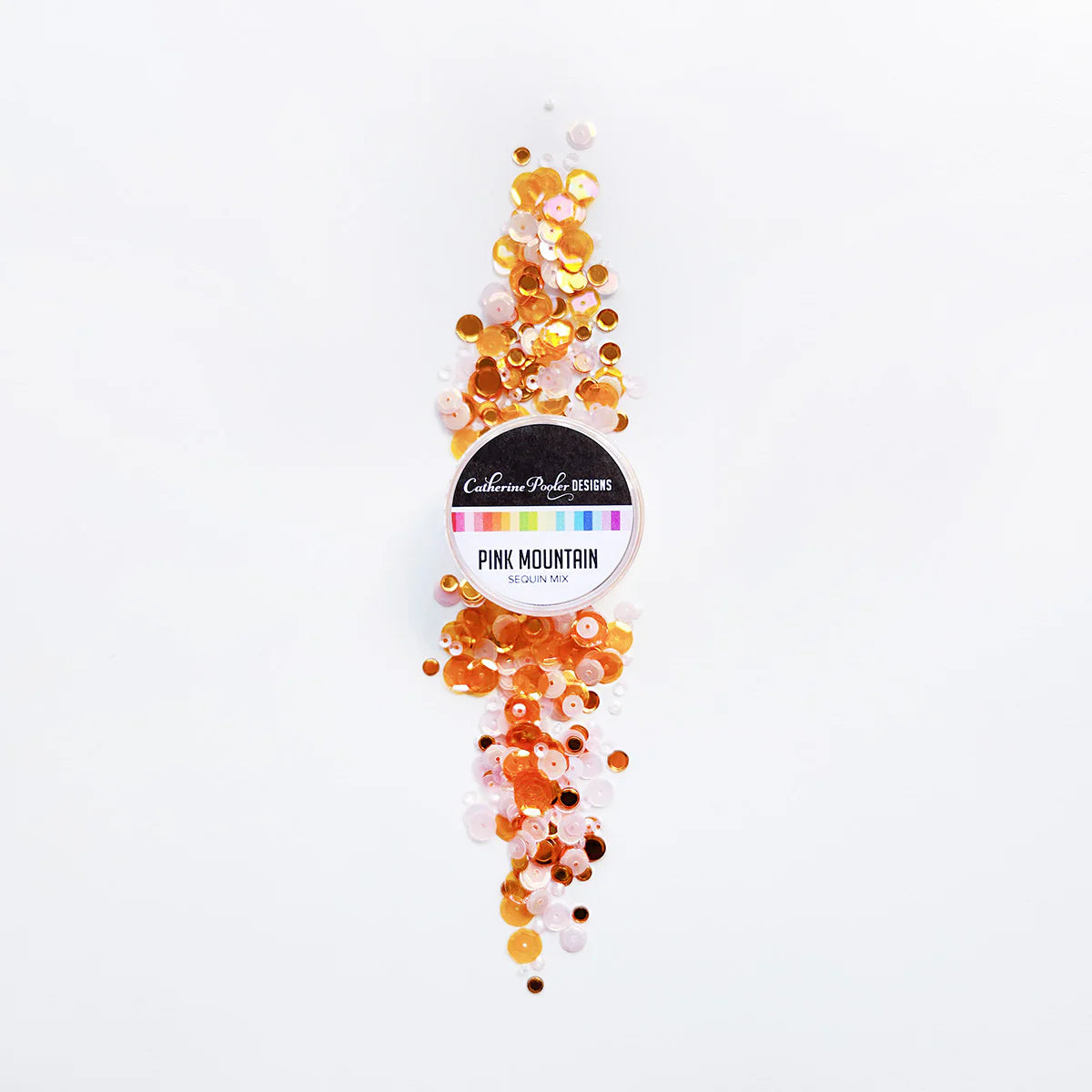 Catherine Pooler - Sequin Mix - Pink Mountain. Inspired by the stunning hues of Pink Mountain in British Columbia, the Pink Mountain Sequins mix features earthy orange tones, pops of pink, and metallic copper—just like the sun setting over the mountains.