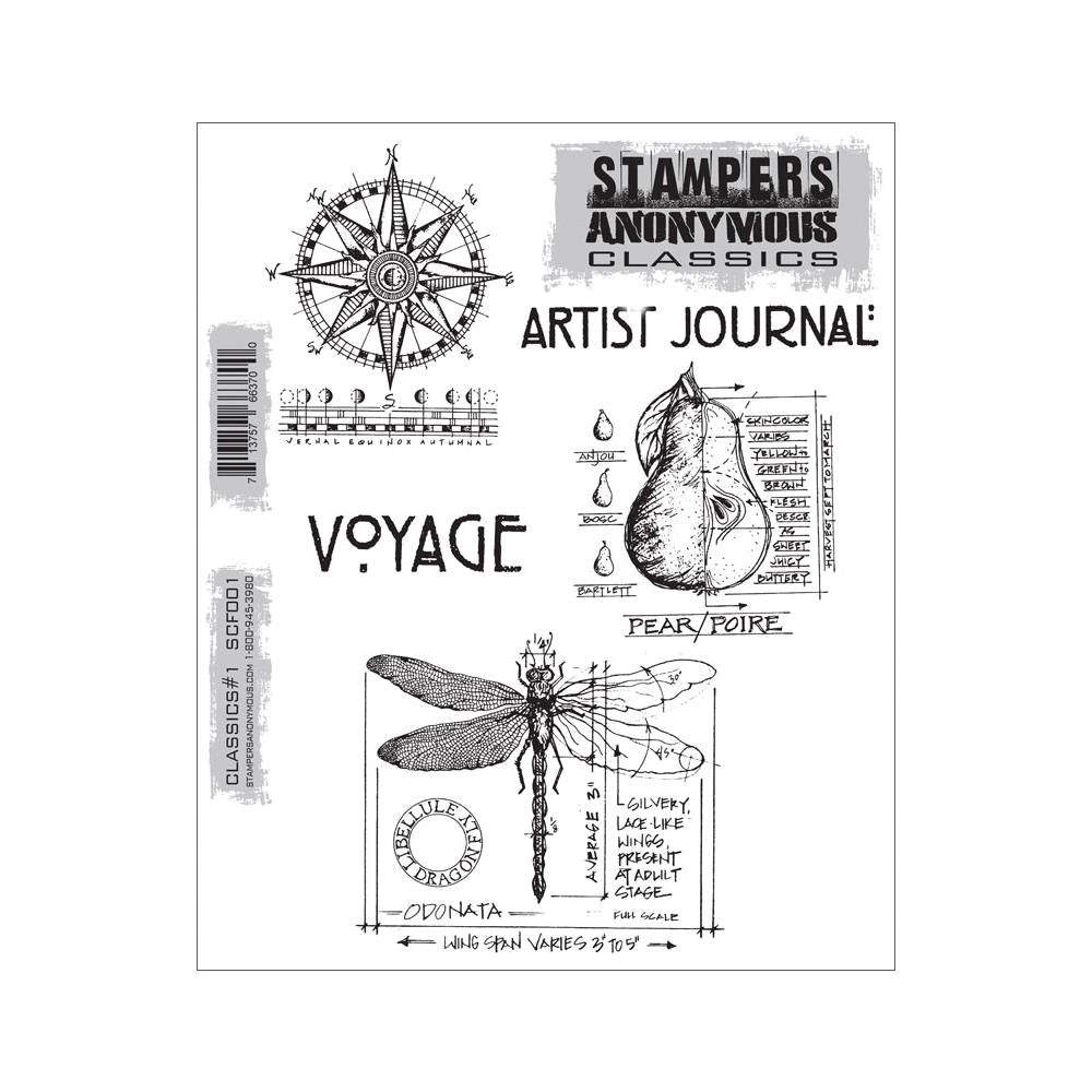 Stampers Anonymous - Tim Holtz - Cling Stamps - 7"X8.5" Classics - #1. This collection of stamps combines the fantastic quality of Stampers Anonymous rubber stamps with the amazing designs of Tim Holtz. Each set of stamps comes mounted on an 8-1/2x7 inch sheet of clear acrylic which has been three-hole punched for easy inclusion into a storage binder. Available in a wide variety of design sets (each sold separately). Number of stamps per package may vary by design. Storage binder not included. Made in USA.