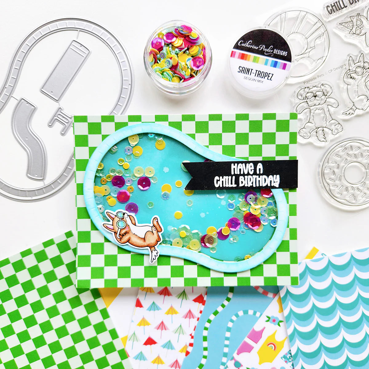 Catherine Pooler - Patterned Paper - Big Splash. Make a big splash with this vibrant paper pack, bursting with a mix of summery patterns and playful poolside prints! From drink umbrellas and pool noodles to bathing suits and bold geometrics, these designs capture all the fun of a day in the sun. The cheerful color palette coordinates perfectly with Samba, Limoncello, Pistachio, Grass Skirt, Cummerbund, Aquatini, Sweetheart, and Pucker Up inks. Whether you're creating cards, scrapbook pages, or party projects, this paper pack brings the sunshine to every creation.